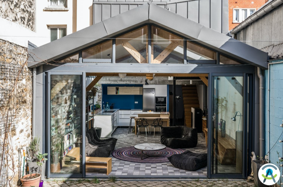 Il nostro architetto partner Magali Hvass dall'agenzia di architettura LYKKE con sede a Parigi Saint-Ouenha realizzato un progetto di ristrutturazione con l'aggiunta di un’ estensione in una casa di città. Le foto di questa realizzazione architettonica sono state scattate dal fotografo professionista Olivier Toggwiler. L'architetto ha ristrutturato un hangar e ha aggiunto una moderna estensione per aumentare lo spazio abitativo.